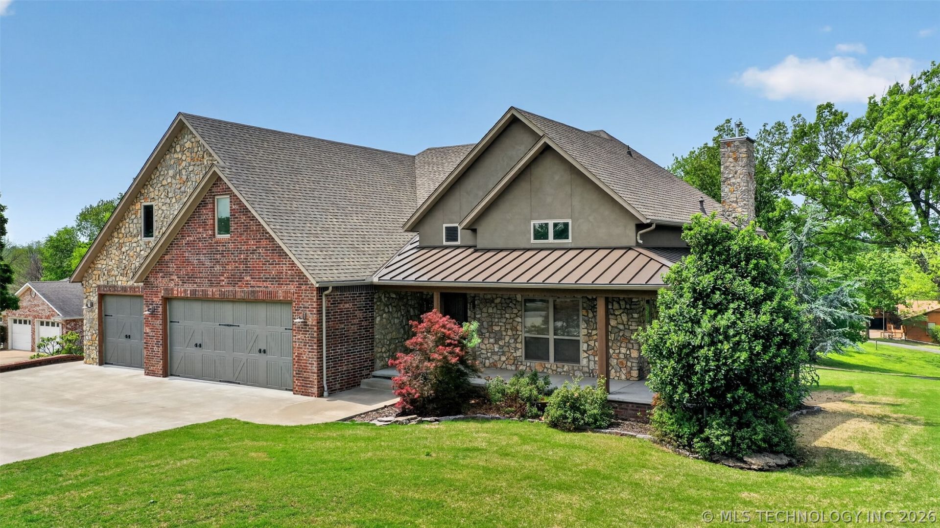 NEW PRICE!! Welcome to this stunning custom-built luxury home FOR SALE in Pryor, OK, on a corner lot inside a gated lake community on beautiful Lake Hudson. This property offers breathtaking lake views, upscale finishes, & a thoughtfully designed layout that blends comfort with elegance. Step inside & be greeted by soaring 14-foot ceilings accented w/ gorgeous wood beams. Just off the entry, you'll find a spacious office or flex room, ideal for working from home or additional living space. The open-concept living room & kitchen create the perfect setting for entertaining, complete with an eat-in dining area. The kitchen features granite countertops, stainless steel appliances, a walk-in pantry, & lots of cabinets. The living room has a fully rocked fireplace with pellet stove & charming window seats on both sides-perfect for taking in the lake views. Double sliding doors lead you to a screened-in porch where you can relax & enjoy panoramic views of the lake. The main-floor primary suite offers a private retreat with double sinks, a walk-in shower, a large walk-in closet, and its own covered patio-ideal for adding a hot tub. Downstairs, you'll find a spacious second living/game area with a kitchenette featuring a nugget ice maker and refrigerator. Two additional bedrooms share a full bath, along with a large workout room that could easily serve as a media room. Don't miss the impressive size safe room complete with a Fort Knox vault door-perfect for storage, security, or multi-use space. Additional highlights include a bonus room above the garage, multiple covered porches with lake views, a whole-home generator, full foam insulation, sprinkler system, and built-in bug misting system. The property also features newly planted fruit trees, mature shade trees, and an additional lower-level garage. Enjoy neighborhood amenities, golf cart-friendly living, and convenient access via a 4-lane highway. This move-in ready home truly has it all! LET'S GO LOOK!!