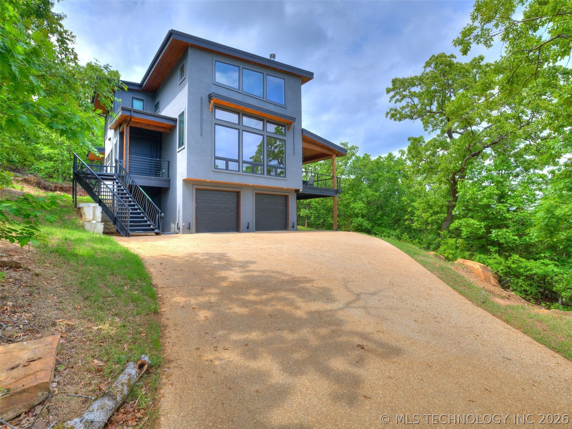 Entertainment dream home on Lake Eufaula! This is lake living at its finest with this brand-new lake view home offering expansive year-round water views. Situated on 1.46 acres, this newly built modern retreat features an open-concept design with a dramatic wall of windows that showcases the beautiful lake setting. With 4 bedrooms and 4 bathrooms, there is plenty of space for family and guests, plus a one-of-a-kind bunk room featuring four custom-built bunk beds. The gourmet kitchen blends style and functionality with granite countertops, a wine refrigerator, and lake views from the dining area. Designed with entertaining in mind, the second floor features a spacious living area, dining space, primary suite, and utility room. The third floor offers two additional bedrooms and two bathrooms, including one with a loft-style view overlooking the main living area. Outdoor living is just as impressive, with multiple spaces to relax and entertain while taking in the lake views. Enjoy cookouts on the large covered deck, unwind on the side deck, or soak in the hot tub on the covered patio. Two fireplaces-one in the main living area and one on the second-story lakeside deck. Currently set up as a short-term rental, this luxurious home may also be purchased fully furnished for a turnkey opportunity. A boat slip may be purchased from the developer, and a new remote-control entrance is planned for the near future to enhance security and convenience. This is an exceptional opportunity to own an entertainer's dream with income production at Lake Eufaula.